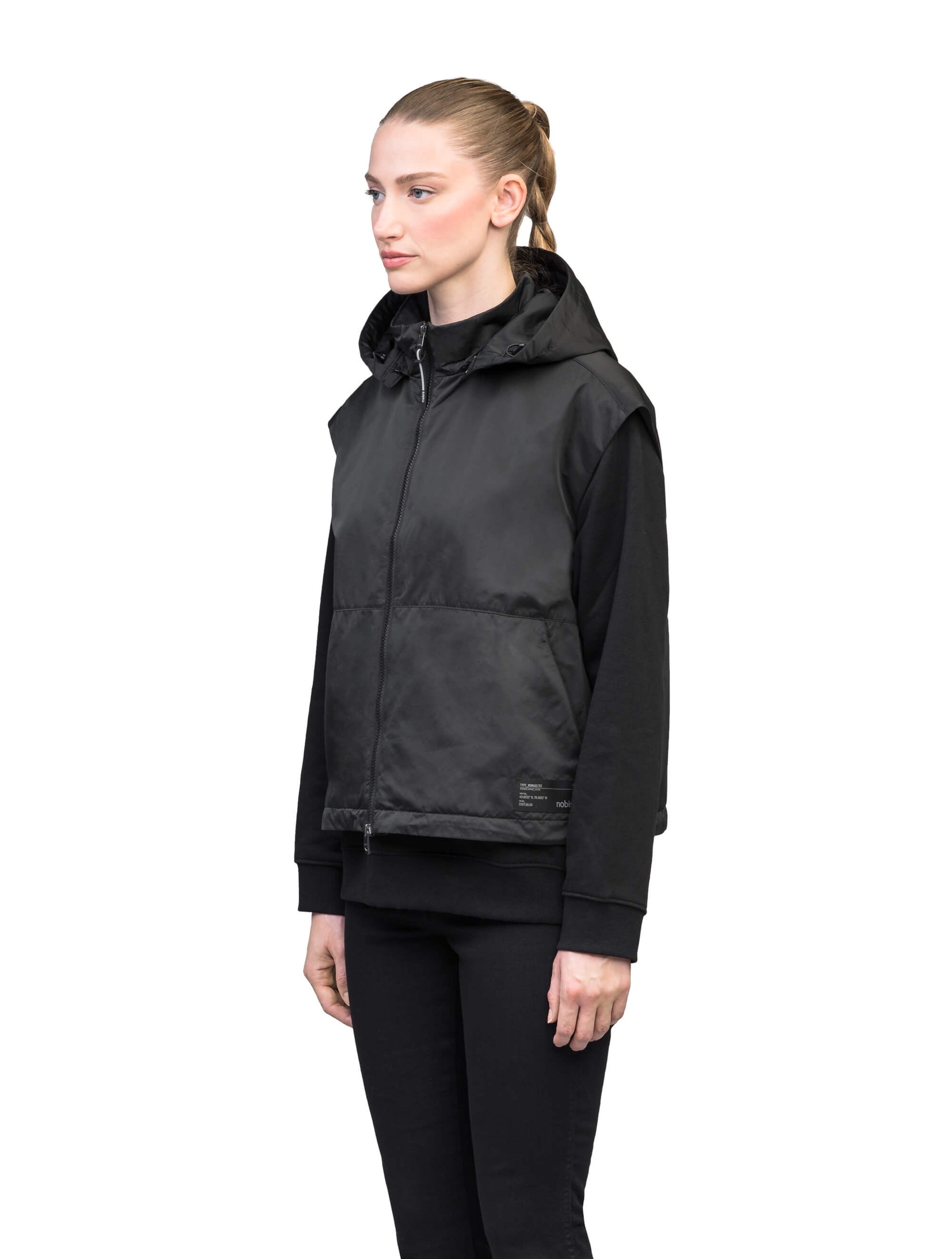 - Removable hood with adjustable drawstrings